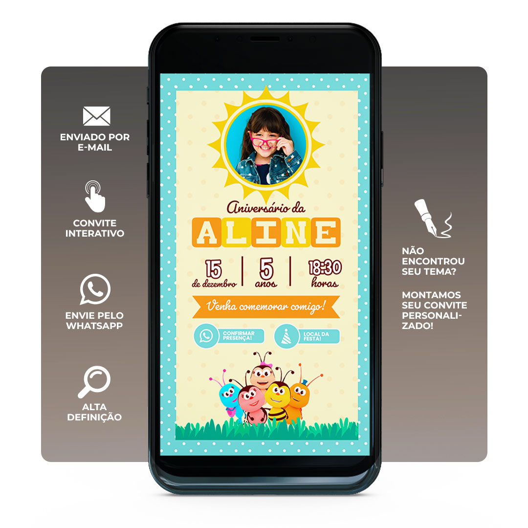 O convite digital de aniversário Bichkids traz toda a alegria e o charme que a festa do seu filho merece! 🎨 Com um design vibrante e envio super fácil, o convite digital é a forma mais moderna e prática para chamar os convidados. Além disso, o convite virtual pode ser compartilhado rapidamente pelo WhatsApp 📲, garantindo comunicação ágil desde o primeiro momento.